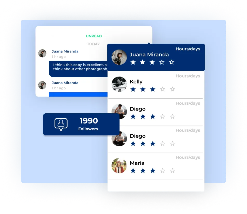 Create responses to your reviews, comments, and messages from your social channels in a single place. Neve miss a conversation again!