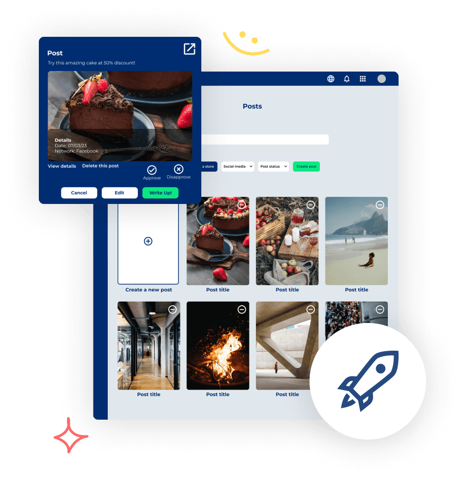 Ideate, create, set up, manage and post multiple content in a single and customizable dashboard.